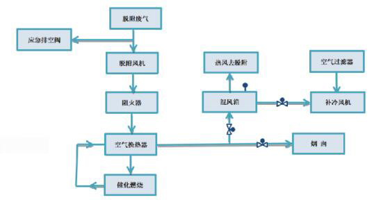 | Технологическая схема адсорбции и десорбции | Технологическая схема процесса десорбционного горения | Визуализация оборудования для адсорбционной каталитической обработки горения |