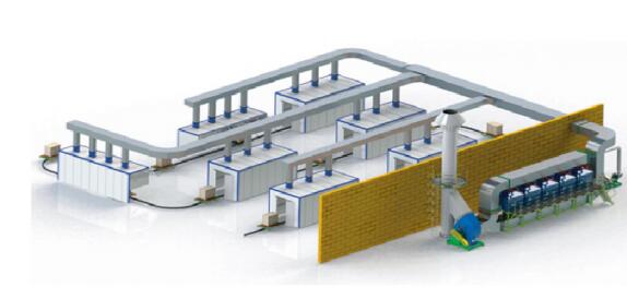 Выхлопные газы направляются в адсорбер с активированным углем с помощью воздухозаборного вентилятора. Под действием силы Ван-дер-Ваальса органический растворитель в выхлопных газах улавливается и адсорбируется микропорами активированного угля. После насыщения активированного угля адсорбцией его регенерируют. Выхлопные газы очищаются путем адсорбции активированным углем, а затем чисто выбрасываются.